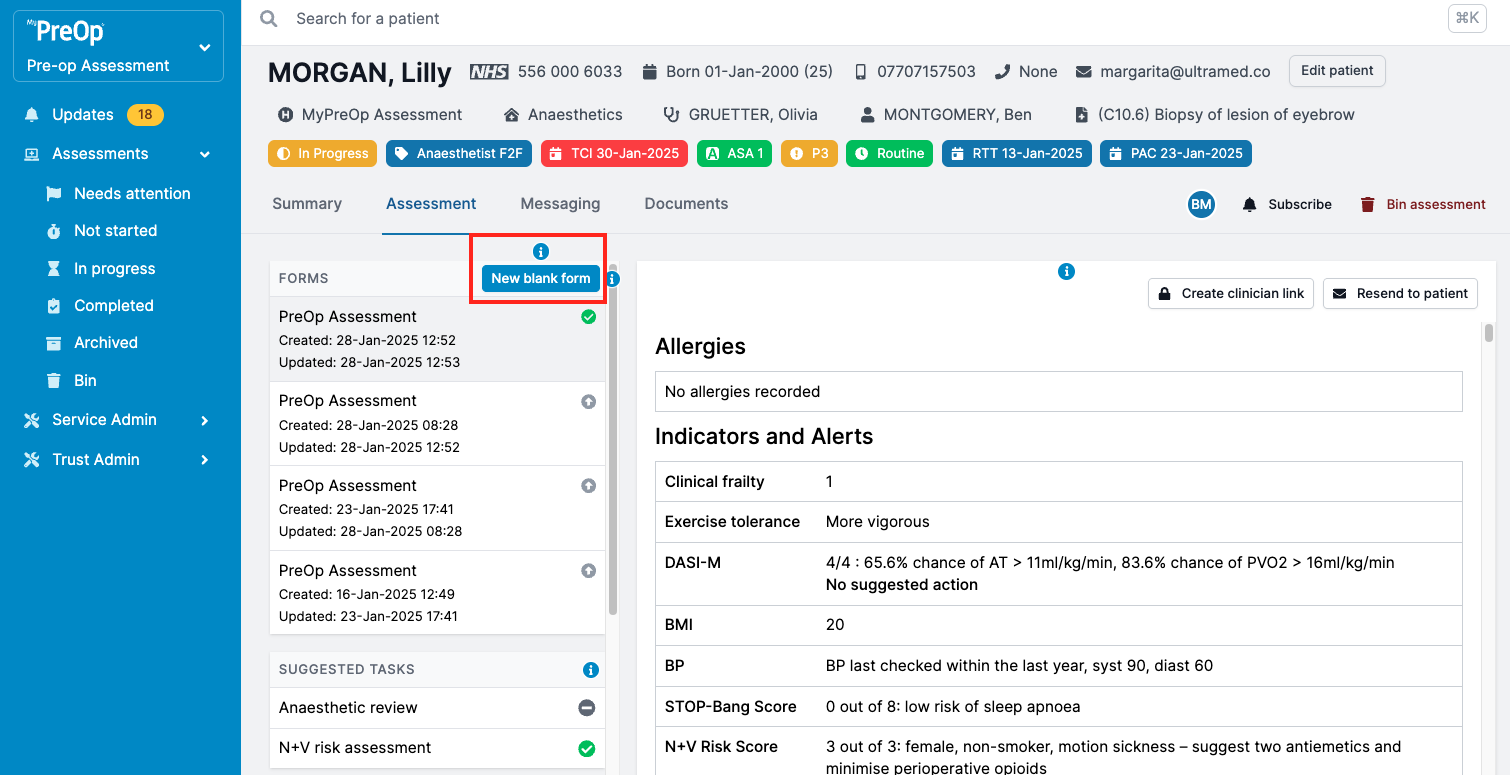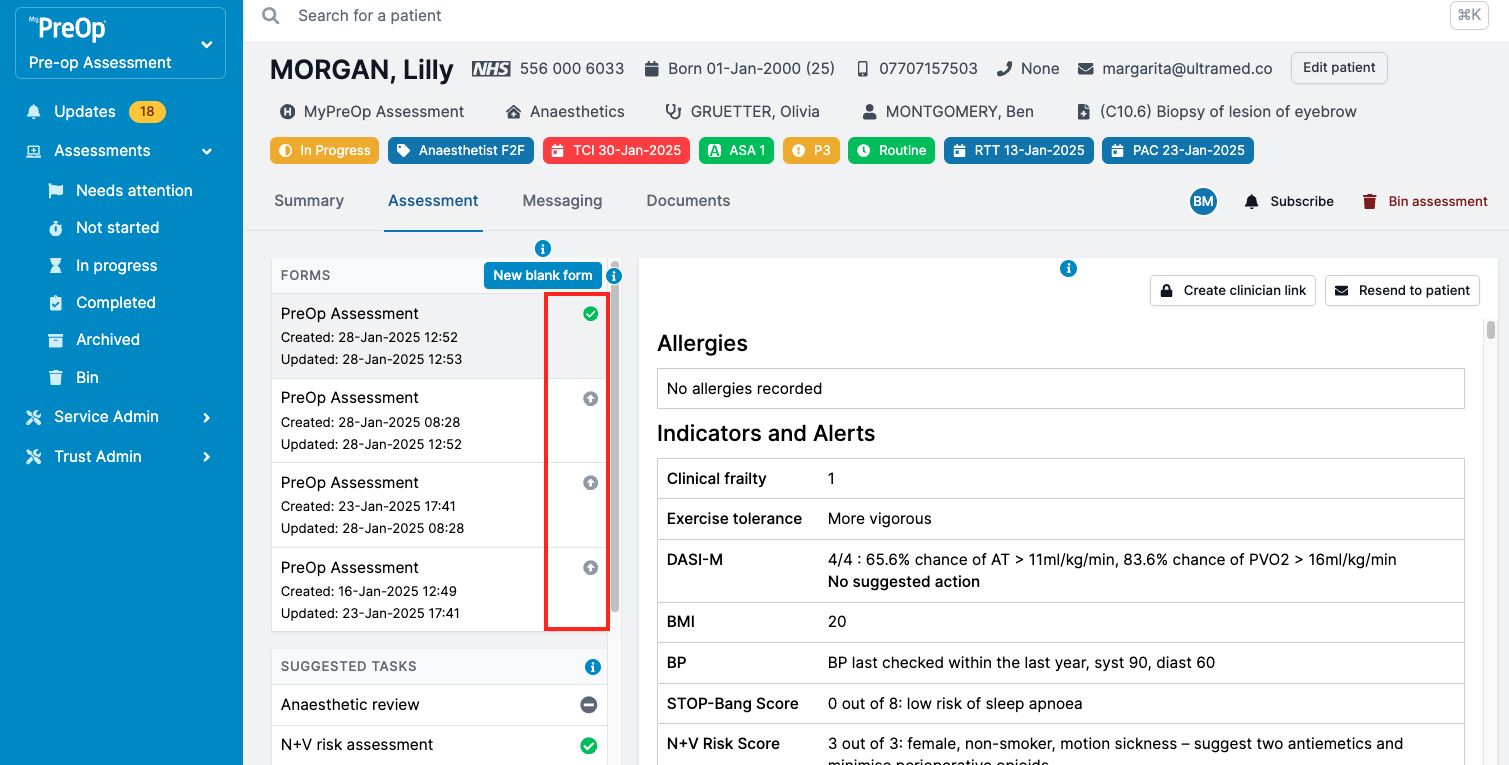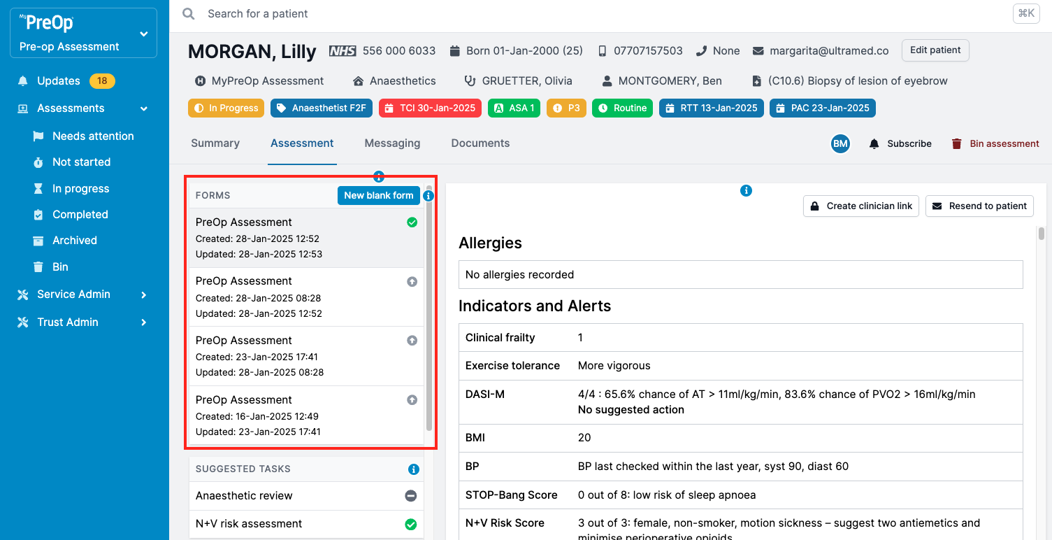 You’ll see the list of forms on the left-hand side of the Assessment tab. To view a form: